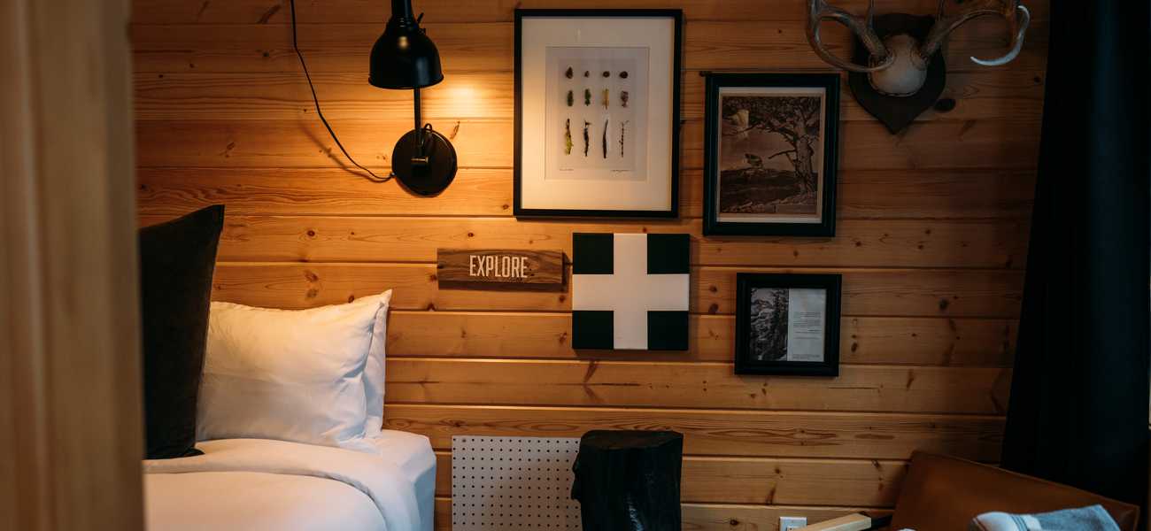 Thoughtfulness and care have been an important part of the process for the Darrows every step of the way. The cabins themselves tell a story of that thoughtfulness. The six cabins began life on an oil field in North Dakota and made a perfect upcycling opportunity. Built to withstand the extreme temperatures of the North Dakota prairie (if you know, you know), their rounded roof profile and robust insulation make them ideal for the Montana wilderness: nice and cool in the summer, nice and warm in the winter, nice either way. Fish Haus, Ski Haus, Bike Haus — each cabin features a different theme, but coziness and the Darrows’ eye for detail and locally sourced touches are the common threads that tie them all together.