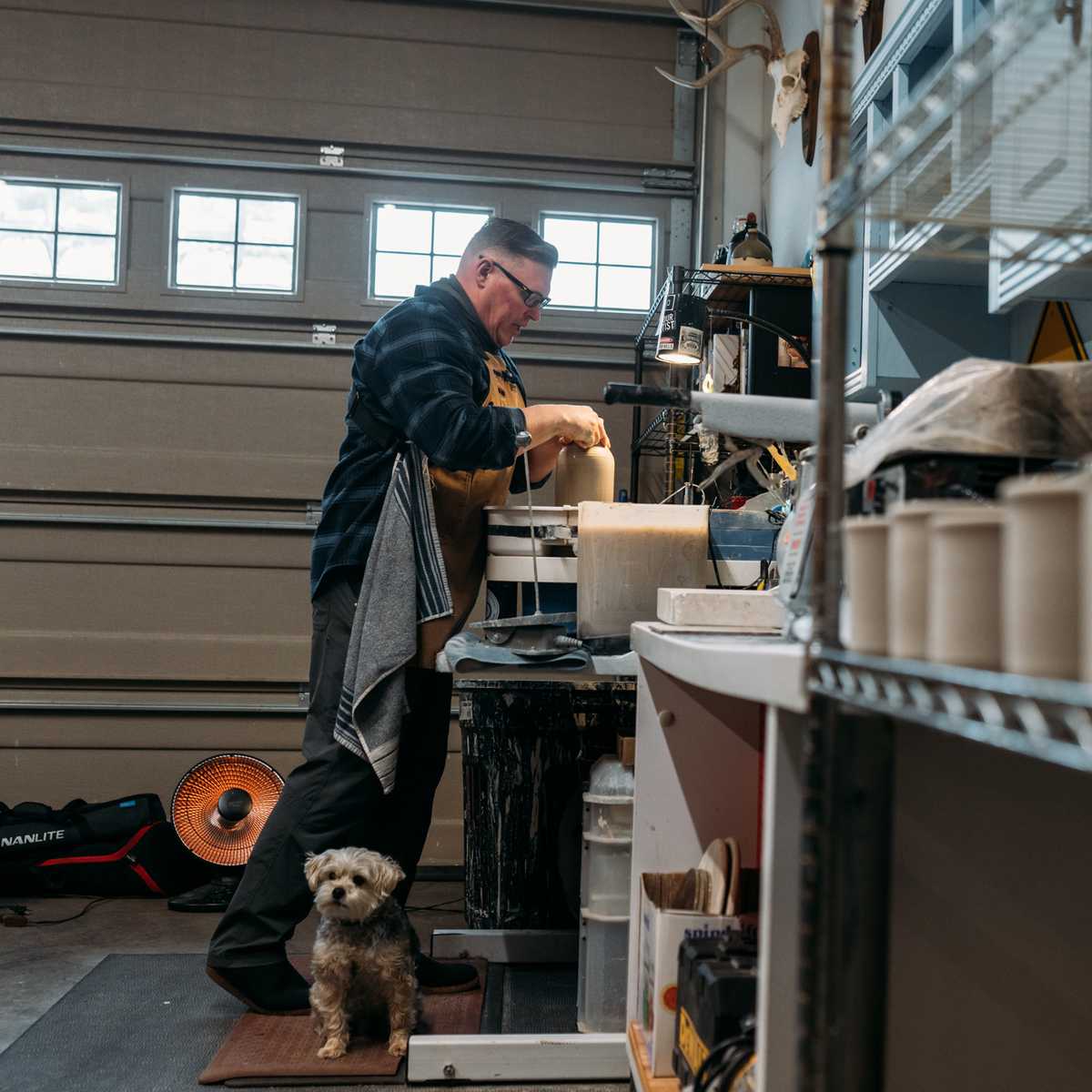 After that year, he transitioned to his own outfit, first creating out of his own studio, and eventually reconfiguring his garage to accommodate pottery equipment after his children were born.
