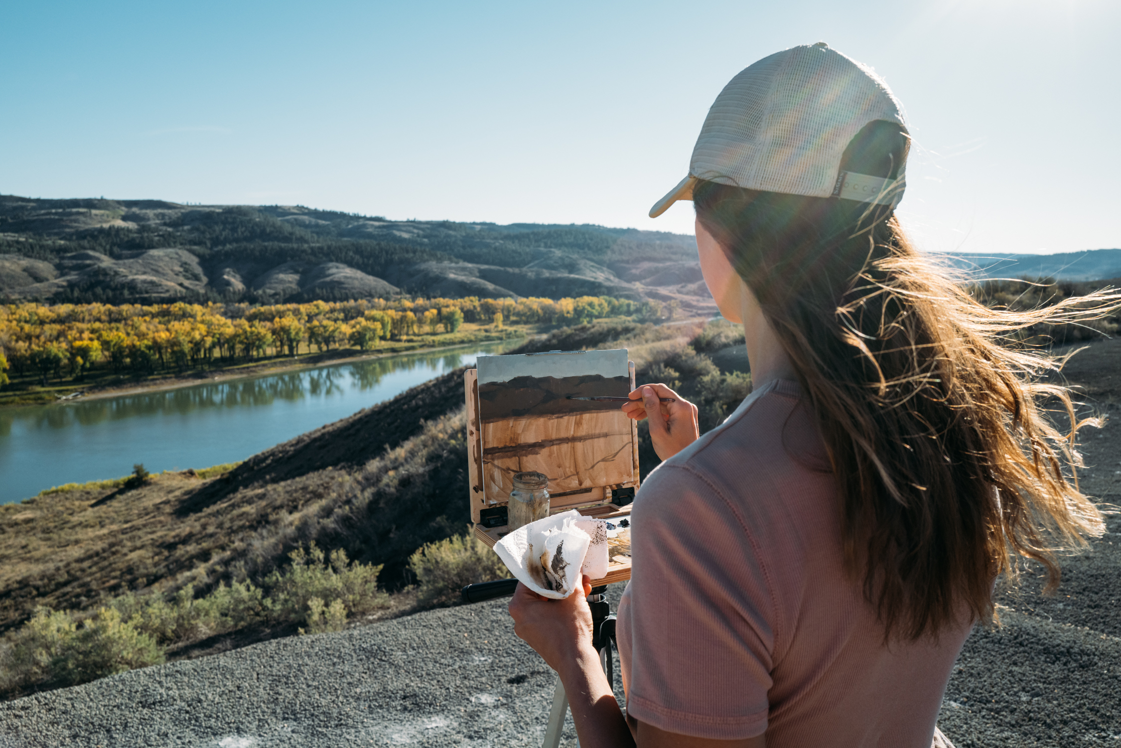 Once you get Kelsey talking about Missouri River Country and the prairie landscapes of the northeast corner of Montana, the words seem to flow as easily as the paint from her brush. “The prairie is really special because at 80 miles per hour on the highway, it just looks like a flat blur of nothing. But you get out there, and you're quiet and you observe and you listen. It's full of life. That's one thing that really surprised me about the prairie is just the breadth of life. Every square inch is full of something living and breathing and pulsing,” she says. “It's a really dynamic landscape. It's volatile. It keeps you on your toes. There are millions of years of fossils there. There's inclement weather. Pretty much everything wildlife-wise that Montana has to offer is there.”