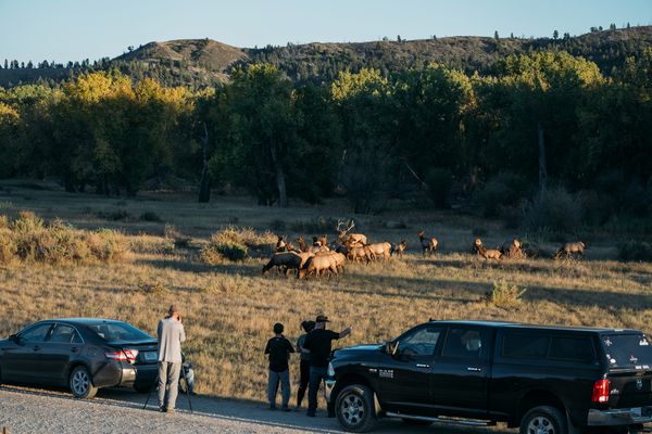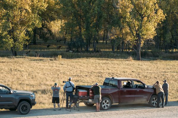 Upon arrival, find a spot alongside other eager wildlife watchers at the edge of the road. You may notice a harem in the distance. Watch their movements closely. Are they still? Are they being herded by a stocky bull in the golden grasses? If you have your binoculars handy, you may catch a young bull approaching from outside the herd. The older bull will attempt to fend off the young intruder, antlers clattering from afar. Who will be successful? Listen for the loud bugles of victory to announce the winner of the harem. May the best elk win.