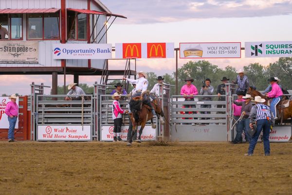The Wolf Point Wild Horse Stampede is a celebration of Western culture that has graced the community for 102 years. Montana’s oldest rodeo — affectionately called the “granddaddy of Montana rodeo” — brings world-class talent to the small town of Wolf Point, located on the Fort Peck Indian Reservation, and features all the best parts of a quintessential Montana rodeo. The competition is best known for its historic Wild Horse Race, where teams of three work together to saddle and ride “wild” horses. This year’s festivities took place July 10-12, a weekend packed to the brim with exciting events and time-honored traditions. Wolf Point was abuzz all weekend long with activities accompanying the rodeo, from the annual Catholic burger stand slinging patties to satisfy the appetites of riders and rodeo-goers alike, to powwows paying homage to the town’s Indigenous history. This quiet community on the banks of the Missouri River comes to life the second weekend of every July.